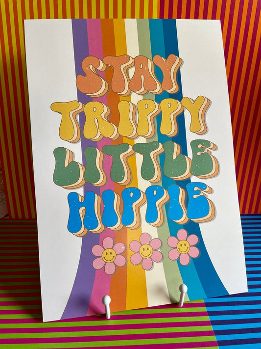 A4 Art Illustration Print: 'Stay Trippy Little Hippie'