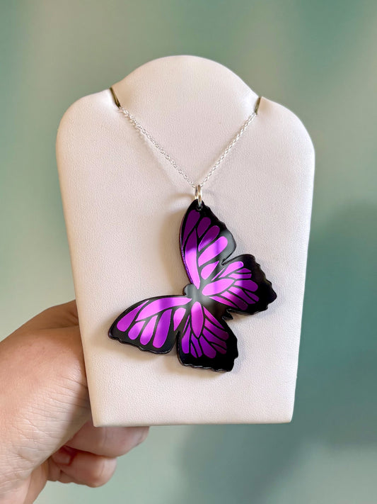 Mirror Acrylic Butterfly Sterling Silver Necklace