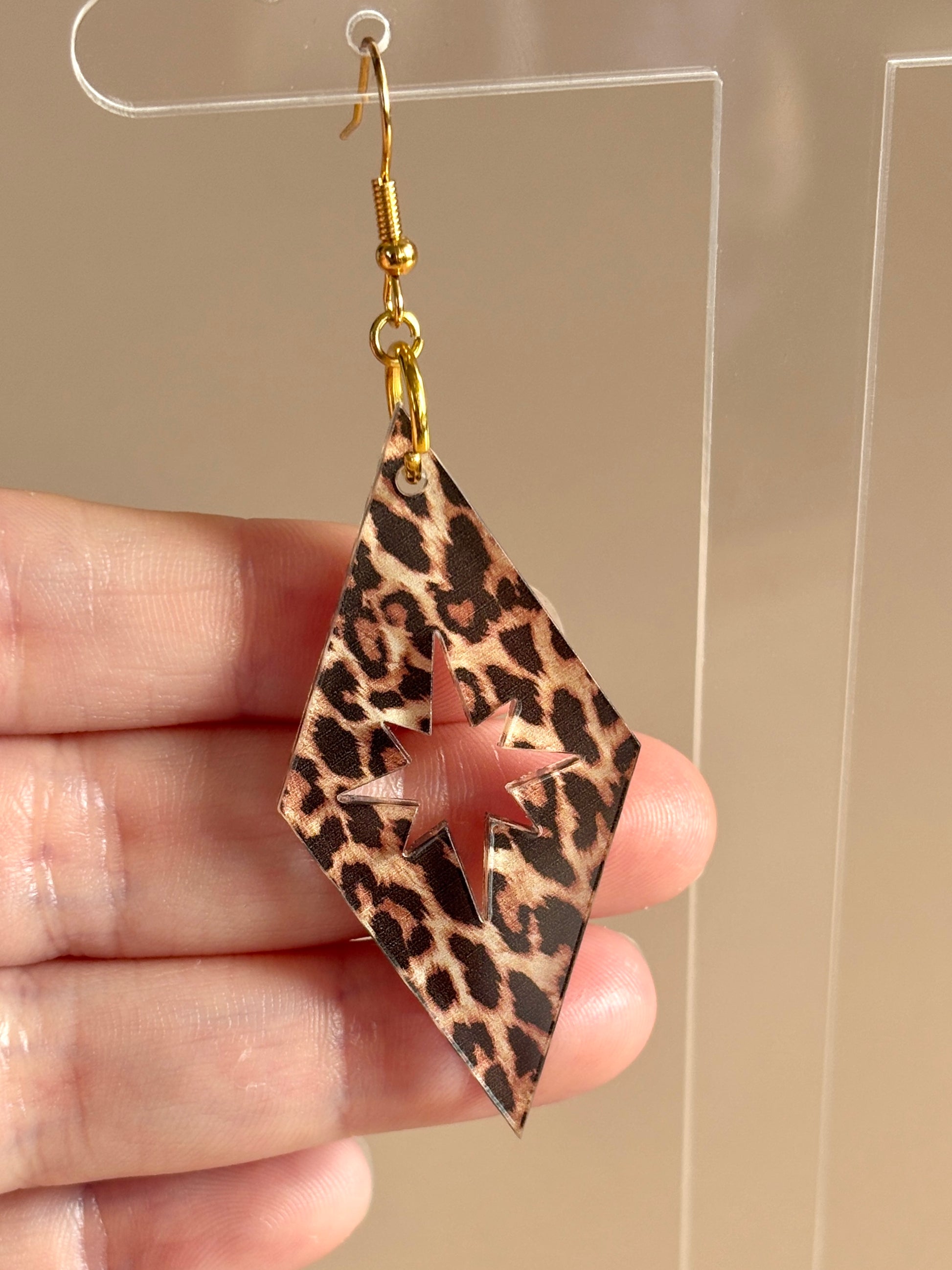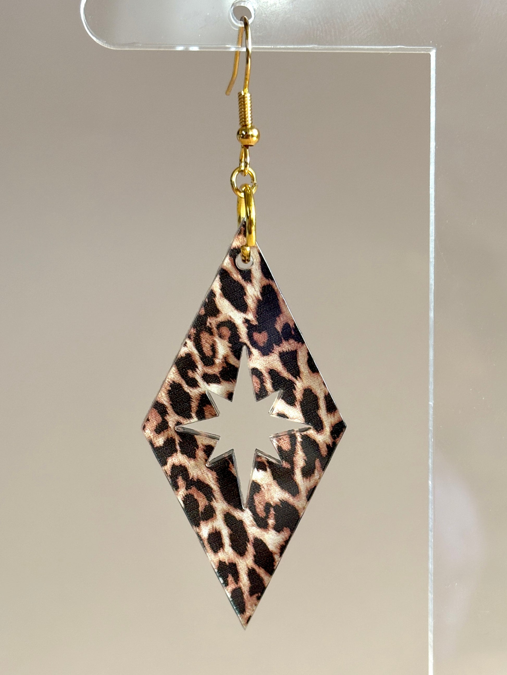 These Leopard Star Diamond Earrings bring full 50s pin-up energy with a rockabilly twist. Featuring a bold diamond shape with a star cut-out in the centre, they combine mid-century style with a fierce modern leopard print.